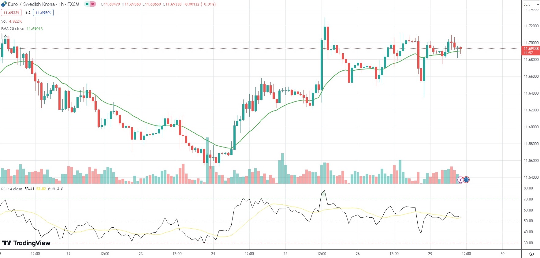 The Swedish Krona was 0.20% weaker on the day against the Euro, with the EUR/SEK currency pair last trading at 11.6934.
