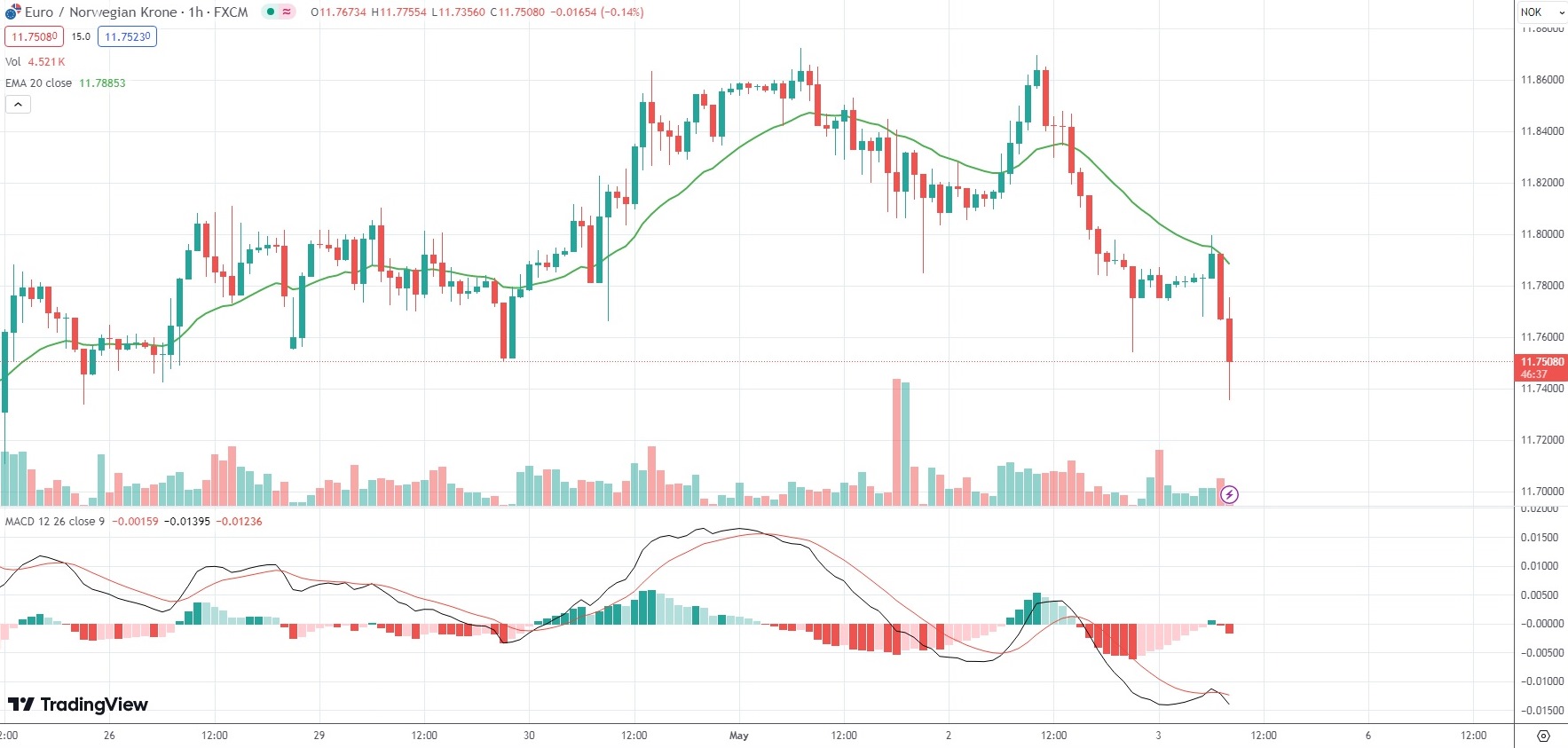 The Norwegian Krone was 0.31% firmer on the day against the Euro, with the EUR/NOK currency pair last trading at 11.7506.