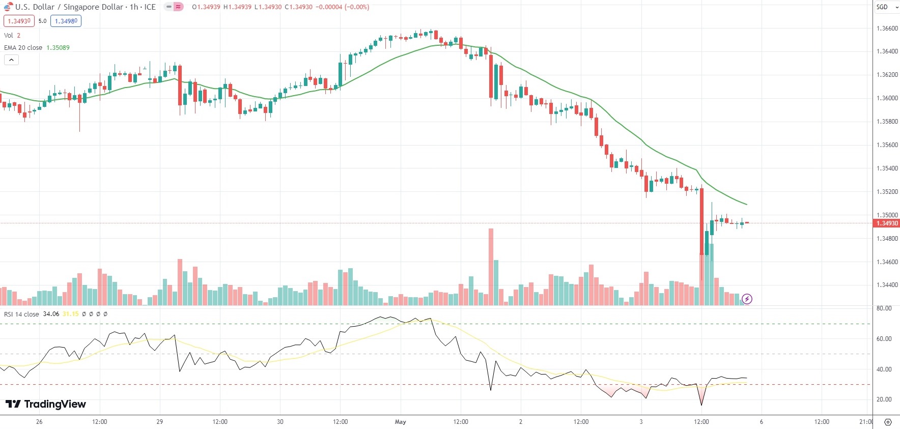 The USD/SGD currency pair settled 0.35% lower at 1.3493 on Friday. For the week, the exotic currency pair retreated 0.97%, or the most since mid-November 2023.