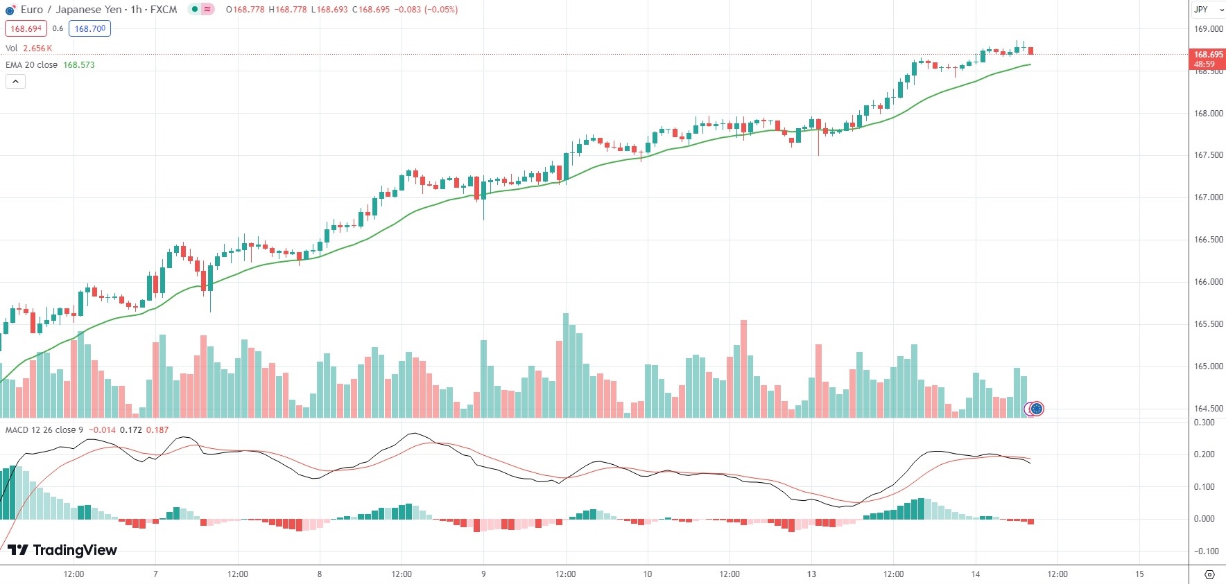 The Euro was last 0.10% firmer on the day against the Japanese Yen, with the EUR/JPY currency pair trading at 168.705.