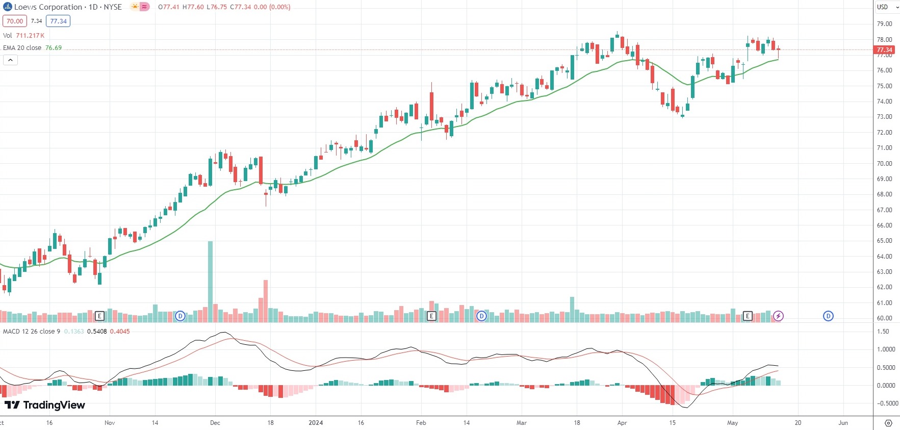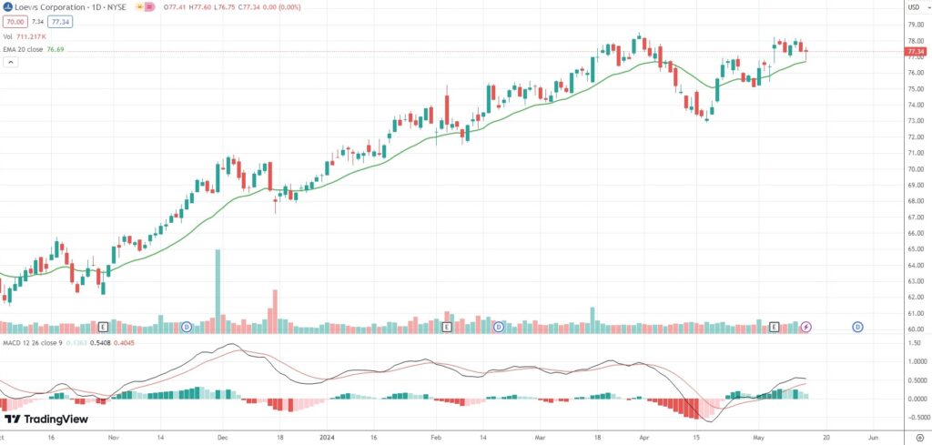 The shares of Loews Corporation (L) closed flat at $77.34 in New York on Tuesday, following a 0.82% loss recorded in the previous market session.