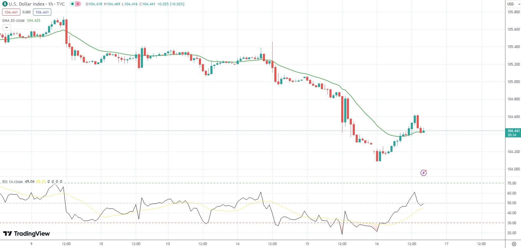The US Dollar Index, which reflects the relative strength of the greenback against a basket of six other major currencies, was last edging up 0.14% on the day to 104.429.