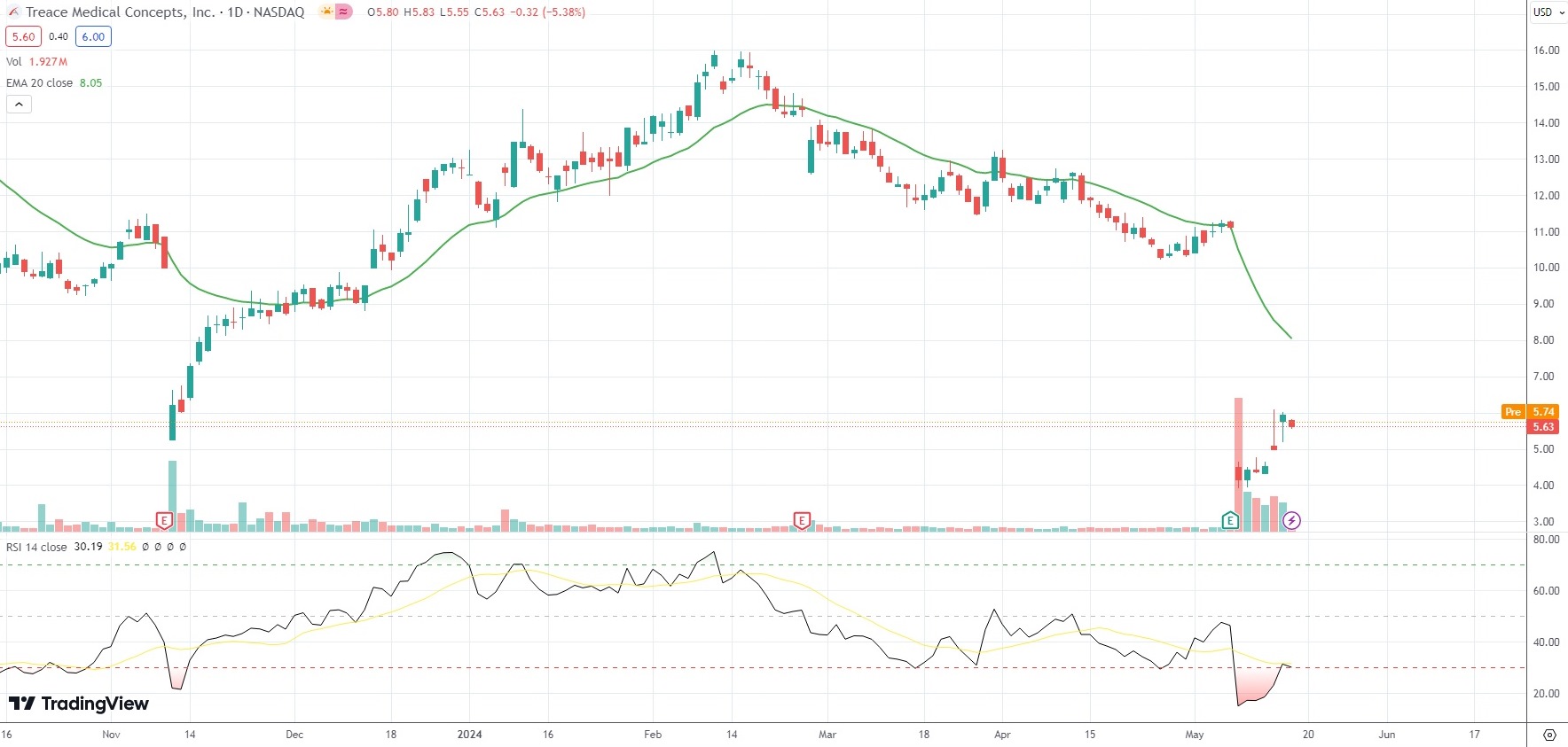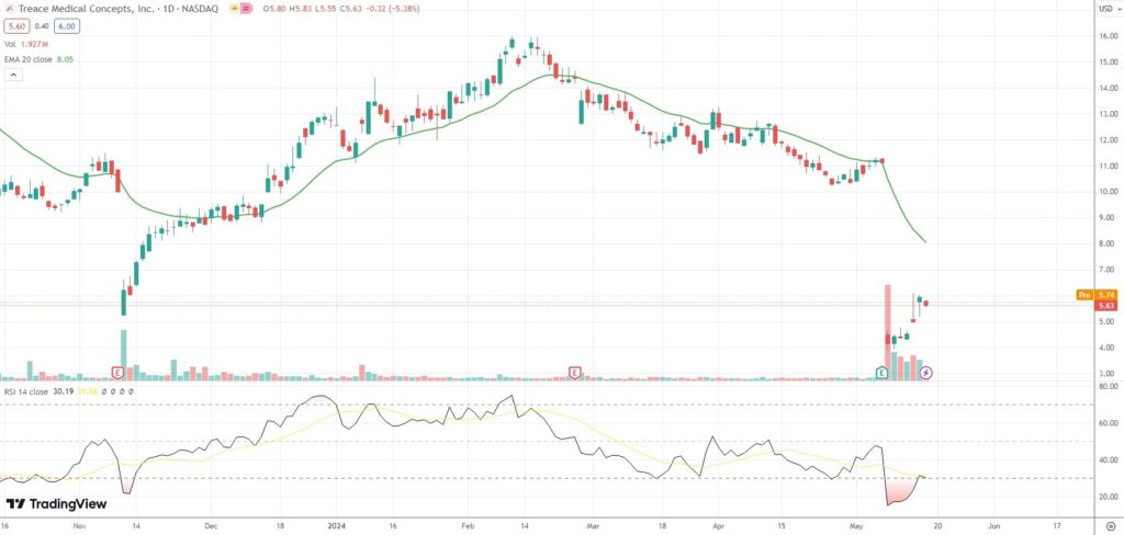 The shares of Treace Medical Concepts Inc (TMCI) closed 5.38% ($0.32) lower at $5.63 on Nasdaq on Thursday, as they snapped a three-day streak of gains.