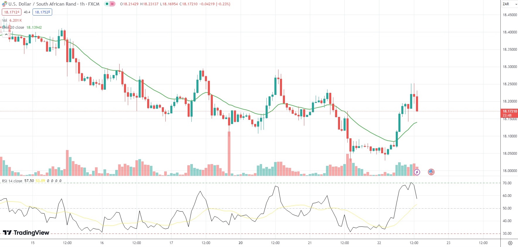 The South African Rand weakened 0.57% on the day against the US Dollar, with the USD/ZAR currency pair last trading at 18.1717.