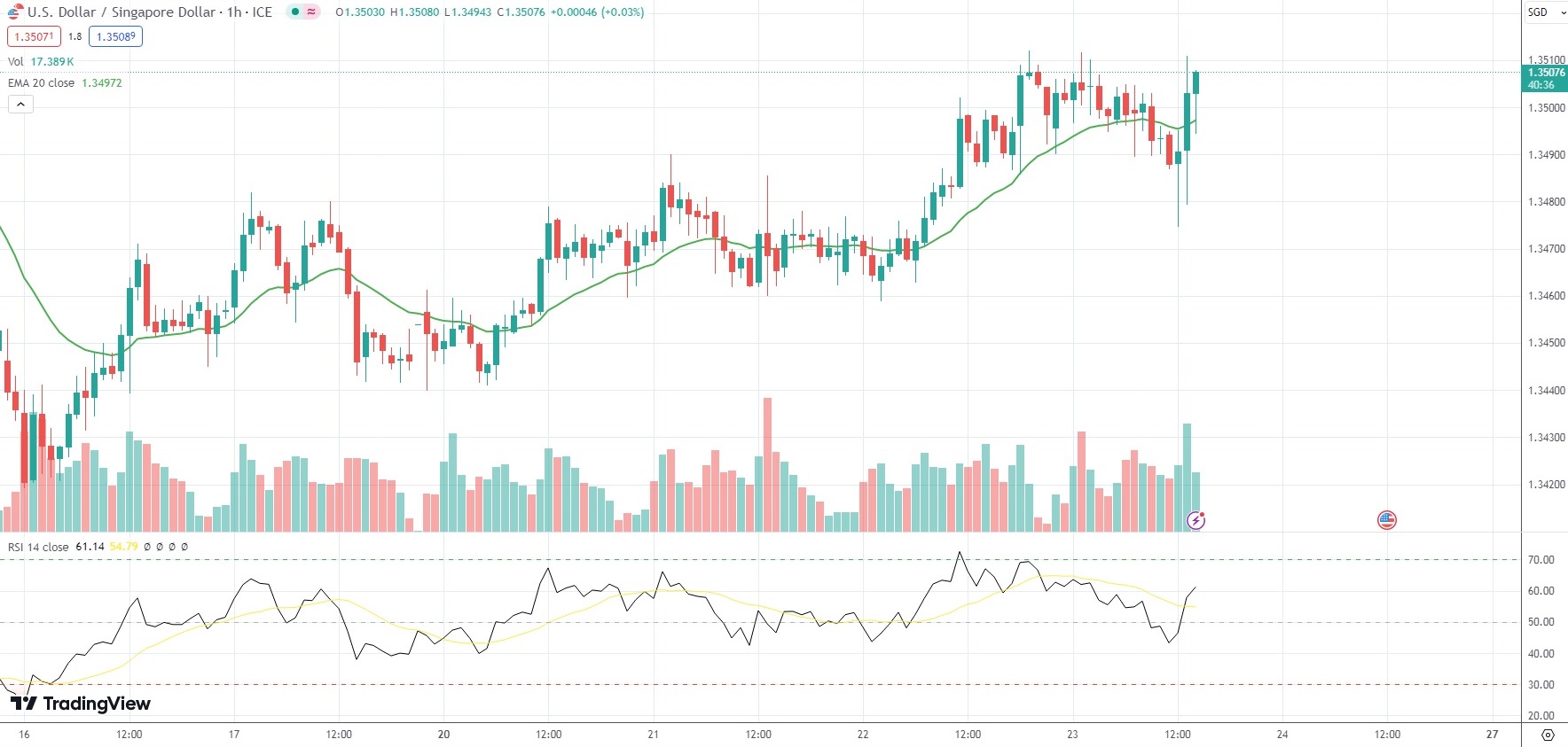 The Singaporean Dollar was 0.10% weaker on the day against its US counterpart, with the USD/SGD currency pair last trading at 1.3507.