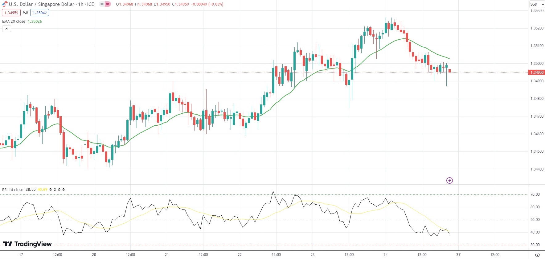 The USD/SGD currency pair settled 0.14% lower at 1.3495 on Friday. For the week, the exotic currency pair edged up 0.30%, while reversing a 0.66% loss from the preceding week.