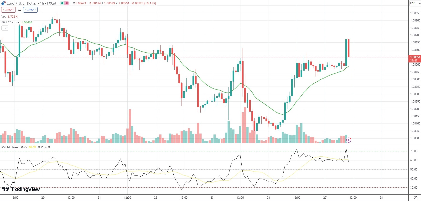 The Euro was last 0.08% firmer on the day against the US Dollar, with the EUR/USD currency pair trading at 1.0855.