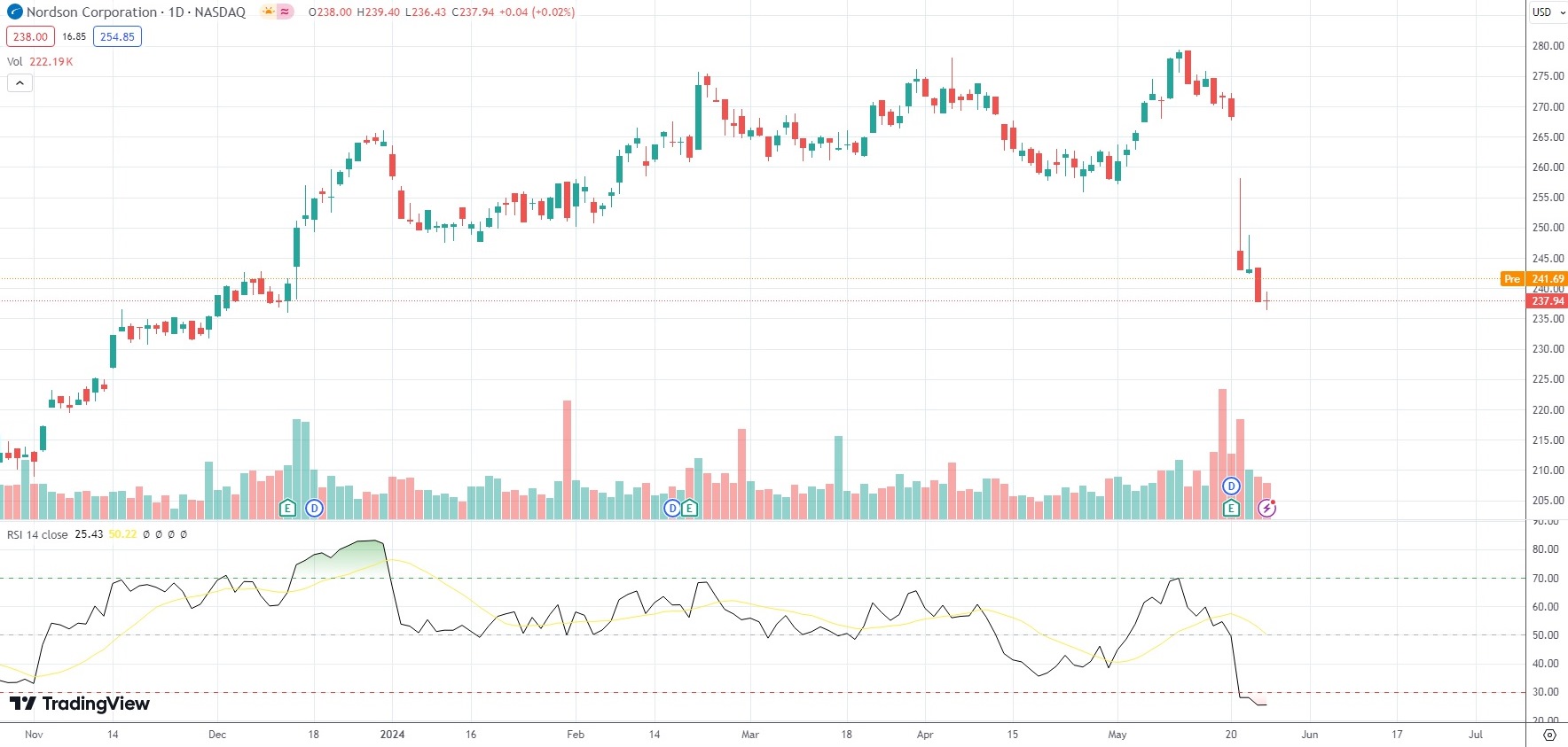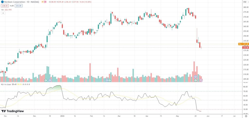 The shares of Nordson Corporation (NDSN) closed 0.02% ($0.04) higher at $237.94 on Nasdaq on Friday, as they snapped a four-day streak of losses.