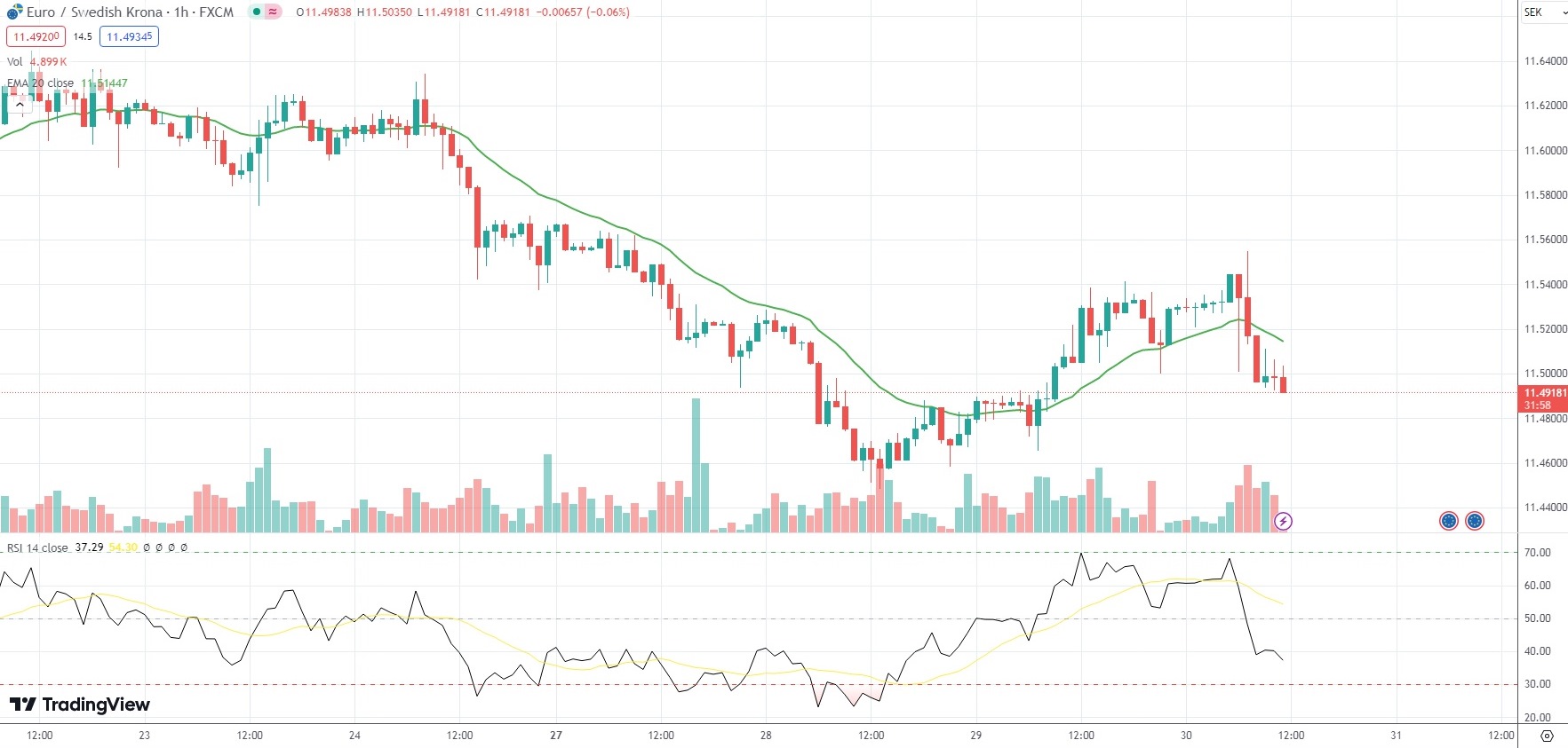 The Swedish Krona was last 0.18% stronger on the day against the Euro, with the EUR/SEK currency pair trading at 11.4932.