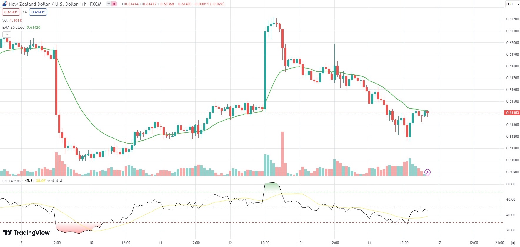 The NZD/USD currency pair settled 0.44% lower at 0.6140 on Friday. For the week, the major Forex pair went up 0.64%, as it reversed a loss from the preceding week.