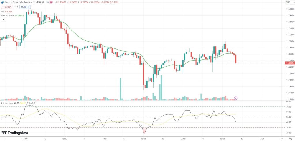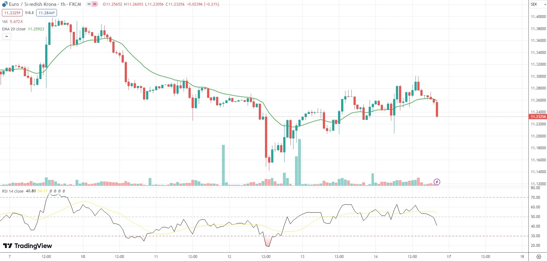 The EUR/SEK currency pair settled 0.05% higher at 11.2325 on Friday. For the week, the exotic Forex pair retreated 1.25%, as it extended a string of four consecutive weekly losses.