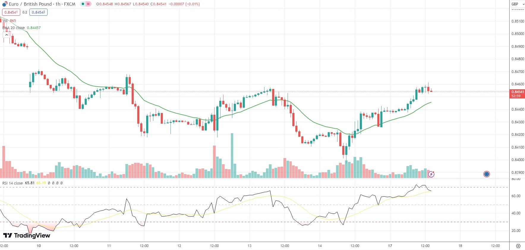The Euro was 0.33% firmer on the day against the British Pound, with the EUR/GBP currency pair last trading at 0.8454.