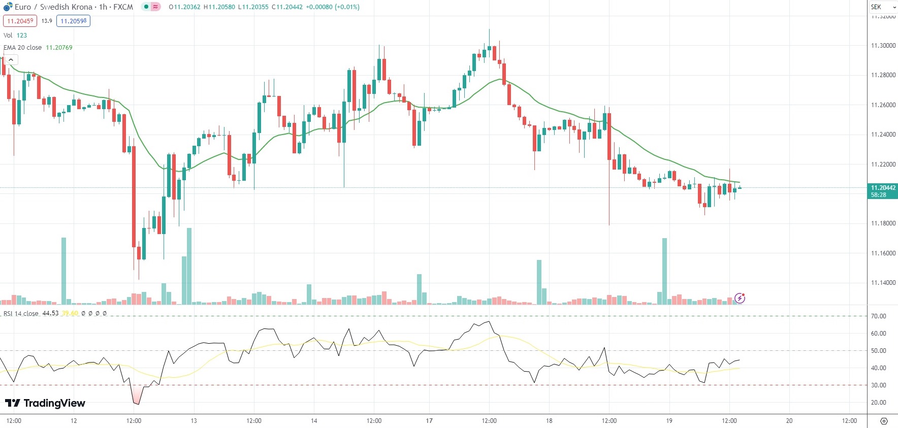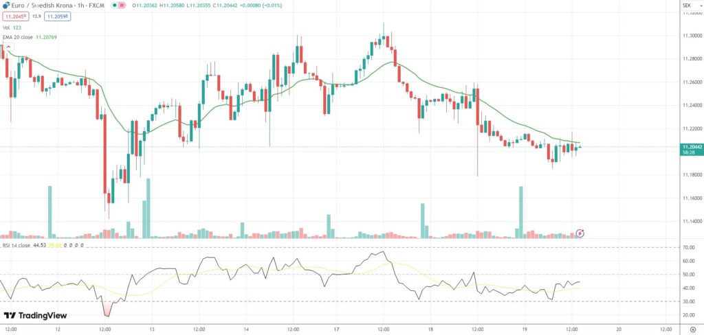 The Swedish Krona was little changed on the day against the Euro, with the EUR/SEK currency pair last trading at 11.2055.
