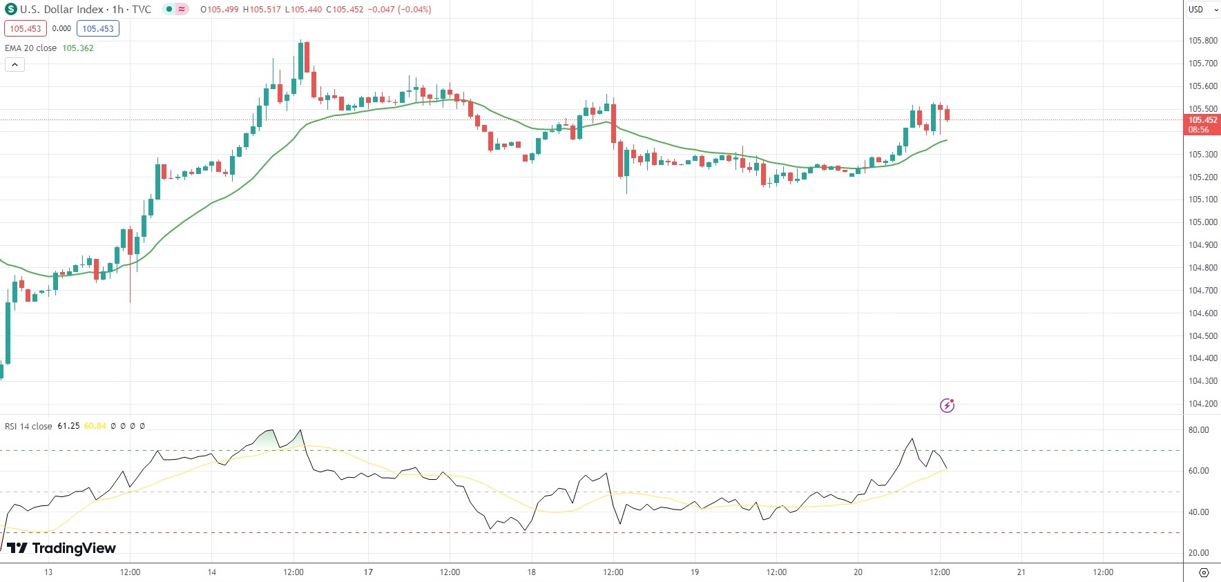 The US Dollar Index, which reflects the relative strength of the greenback against a basket of six other major currencies, was last edging up 0.21% on the day to 105.445.
