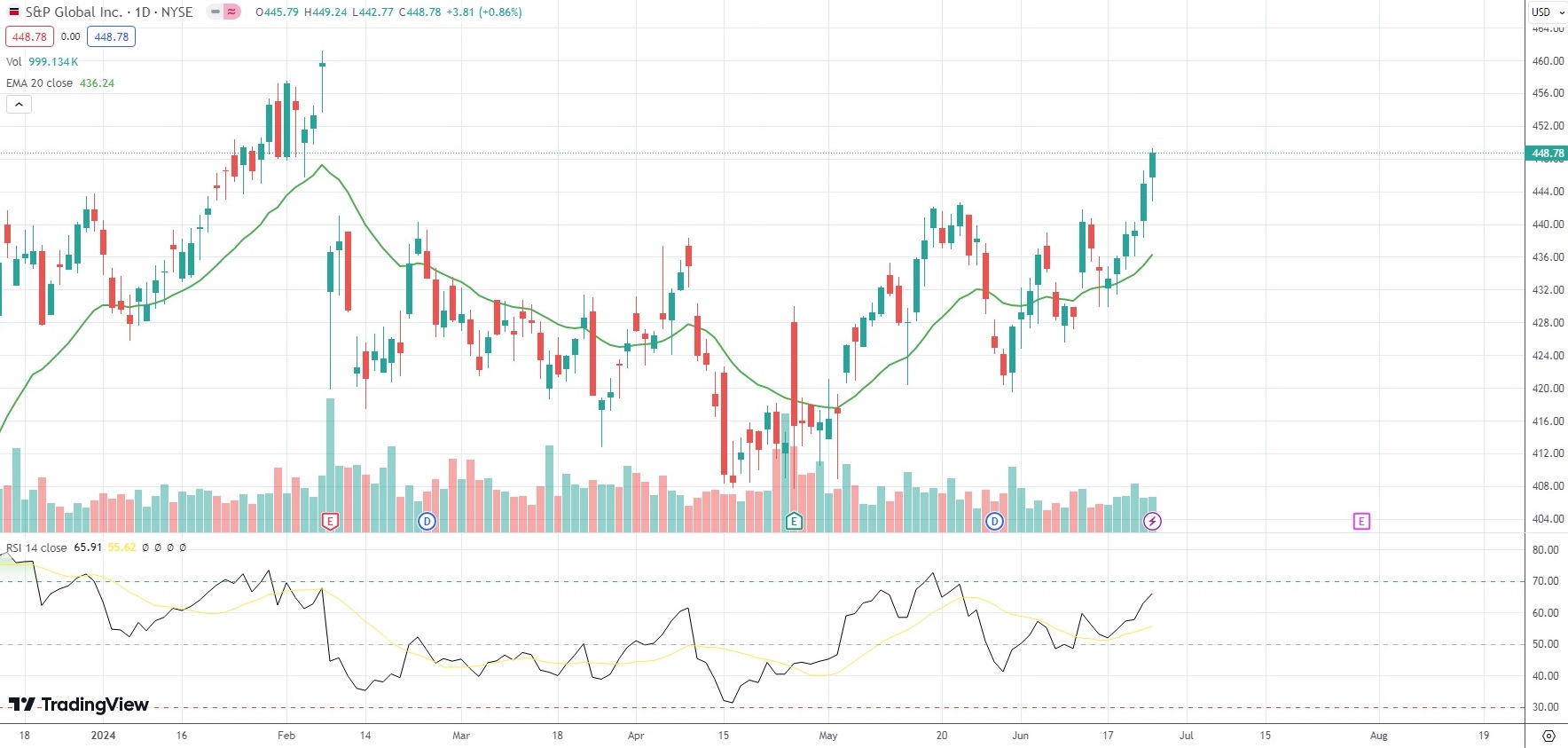 The shares of S&P Global Inc (SPGI) closed 0.86% ($3.81) higher at $448.78 in New York on Tuesday, as they extended the gains from the previous four market sessions.