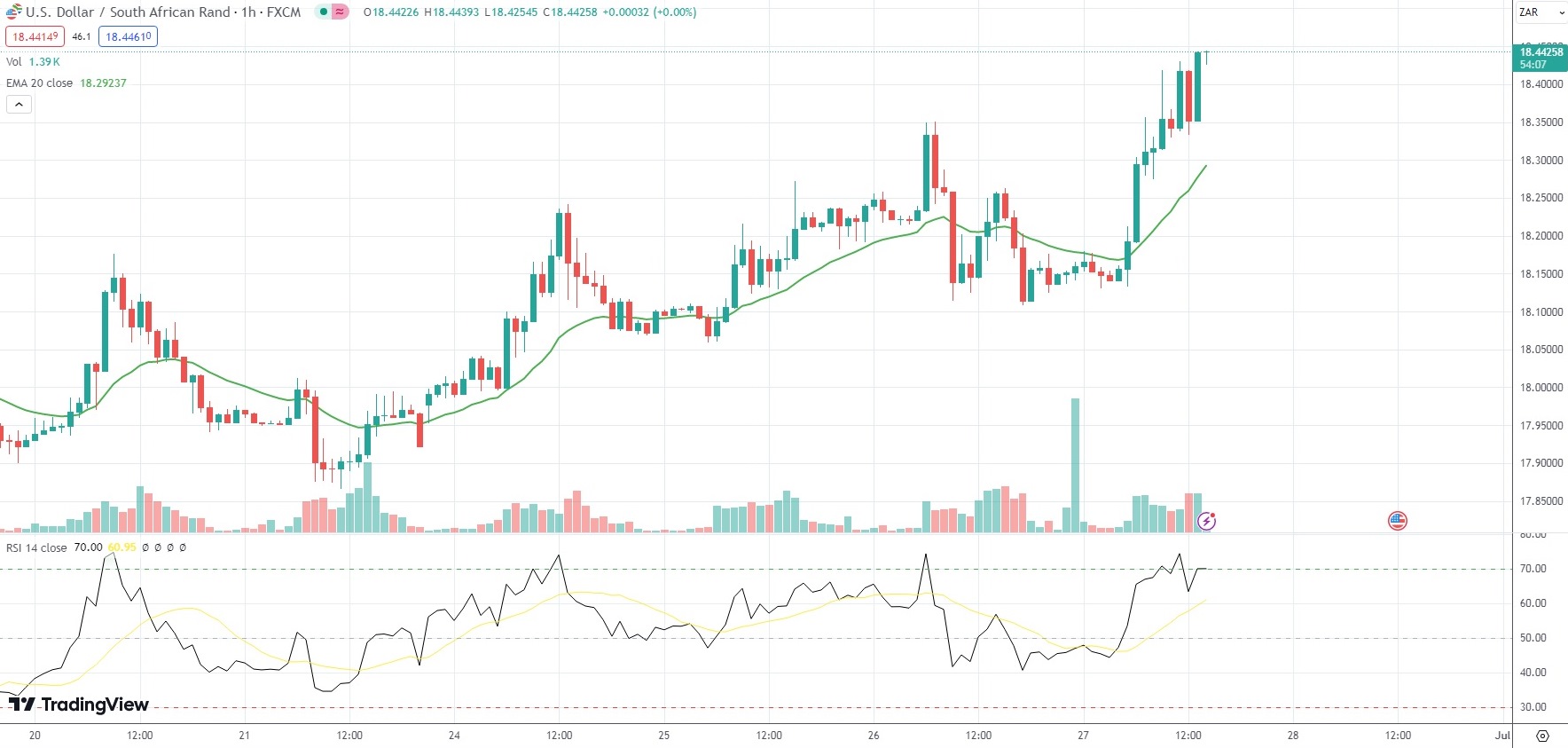 The South African Rand weakened 1.68% on the day against the US Dollar, with the USD/ZAR currency pair last trading at 18.4376.