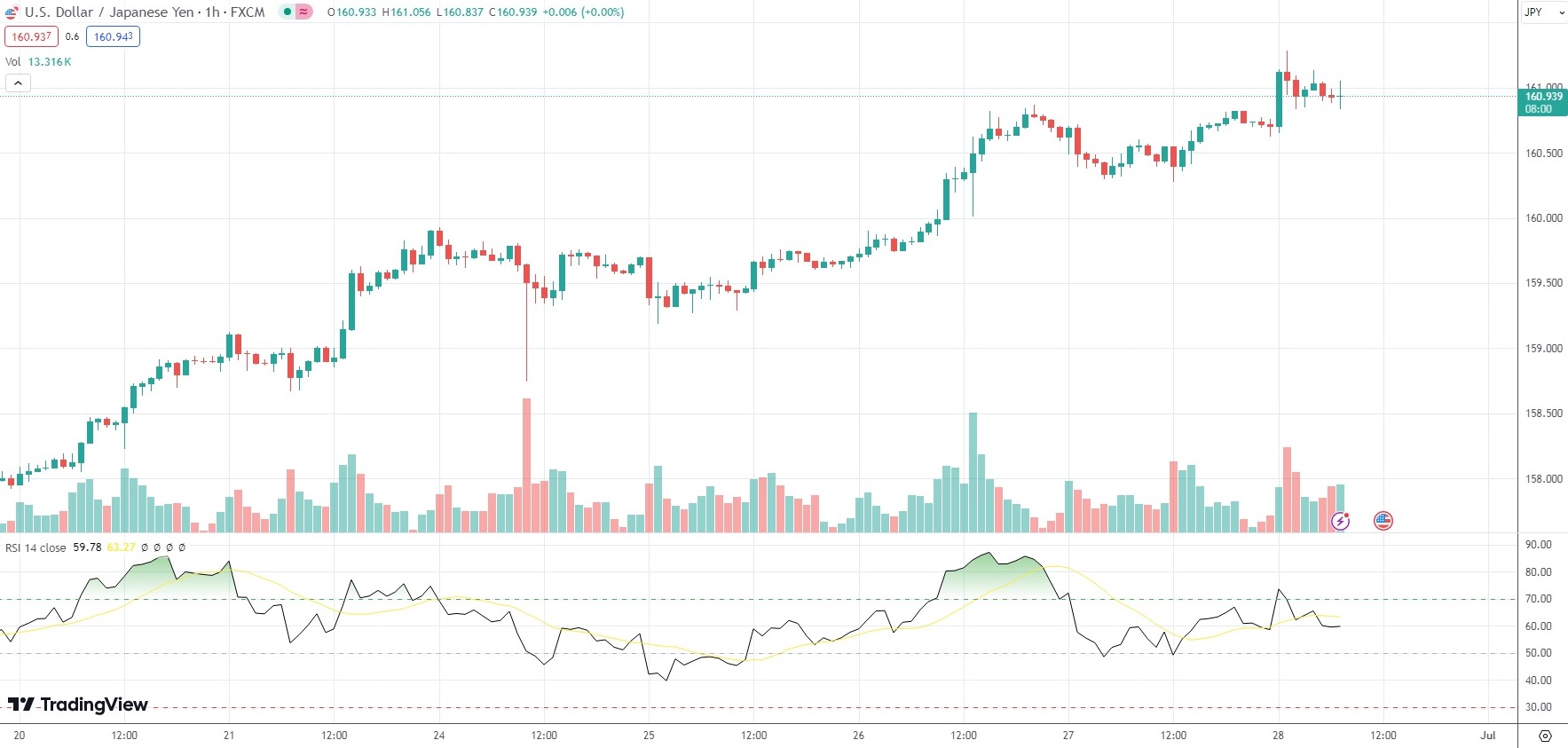 The Japanese Yen was 0.13% weaker on the day against the US Dollar, with the USD/JPY currency pair last trading at 160.937.