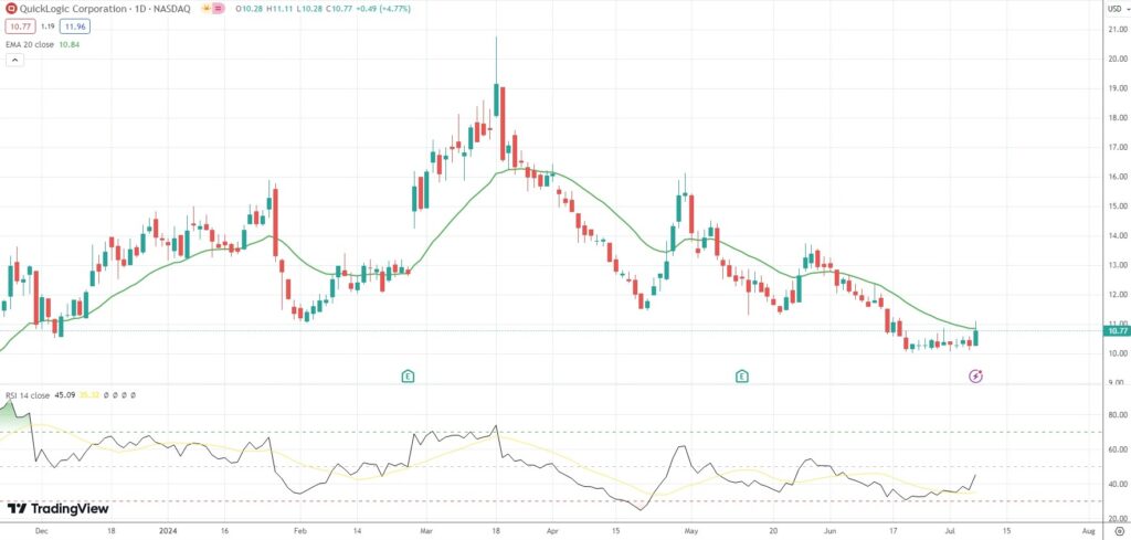 The shares of QuickLogic Corporation (QUIK) closed 4.77% ($0.49) higher at $10.77 on Nasdaq on Monday, as they reversed a loss from the previous market session.