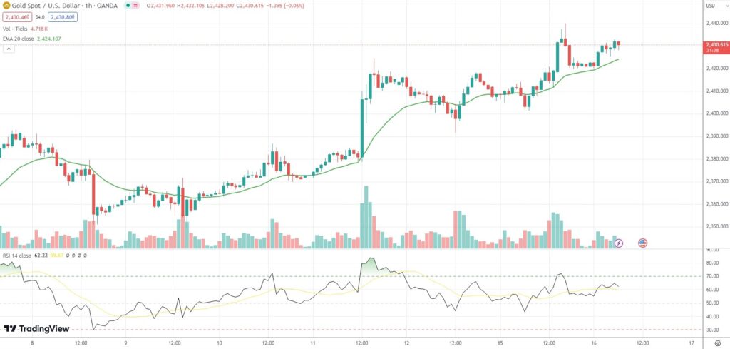 As of 6:28 GMT on Tuesday Spot Gold was edging up 0.35% to trade at $2,430.91 per troy ounce.