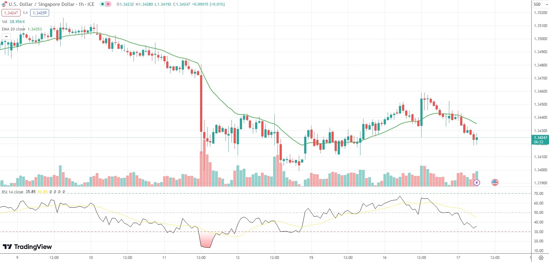 The Singaporean Dollar was 0.13% firmer on the day against its US counterpart, with the USD/SGD currency pair last trading at 1.3424.