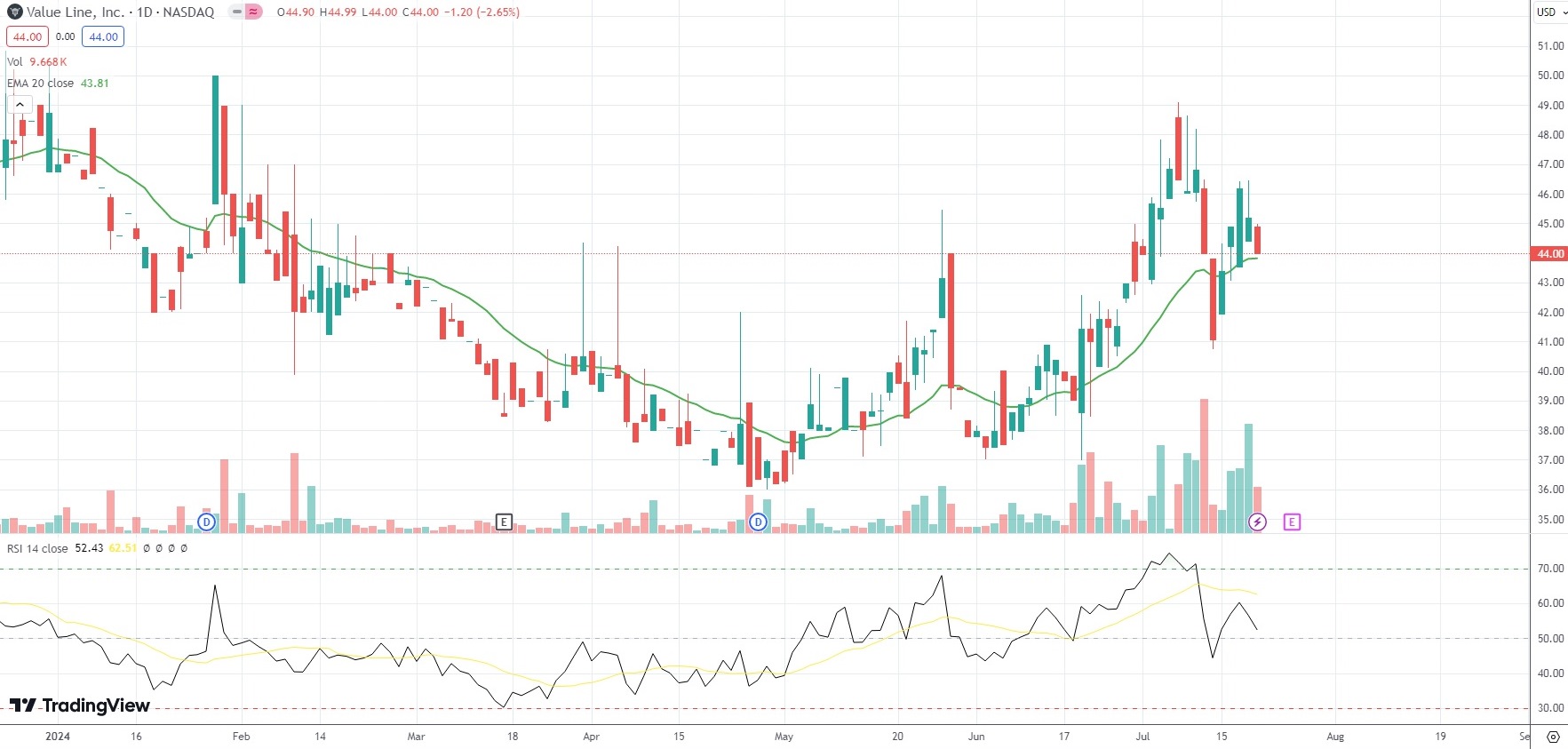 The shares of Value Line Inc (VALU) closed 2.65% ($1.20) lower at $44.00 on Nasdaq on Friday, as they extended the loss from the previous market session.