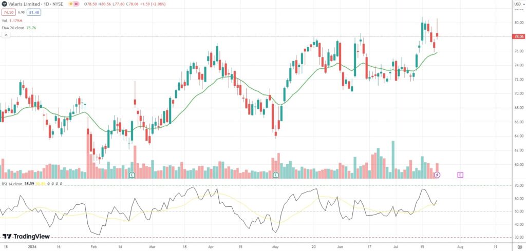 The shares of Valaris Limited (VAL) closed 2.08% ($1.59) higher at $78.06 in New York on Monday, as they snapped a four-day streak of losses.