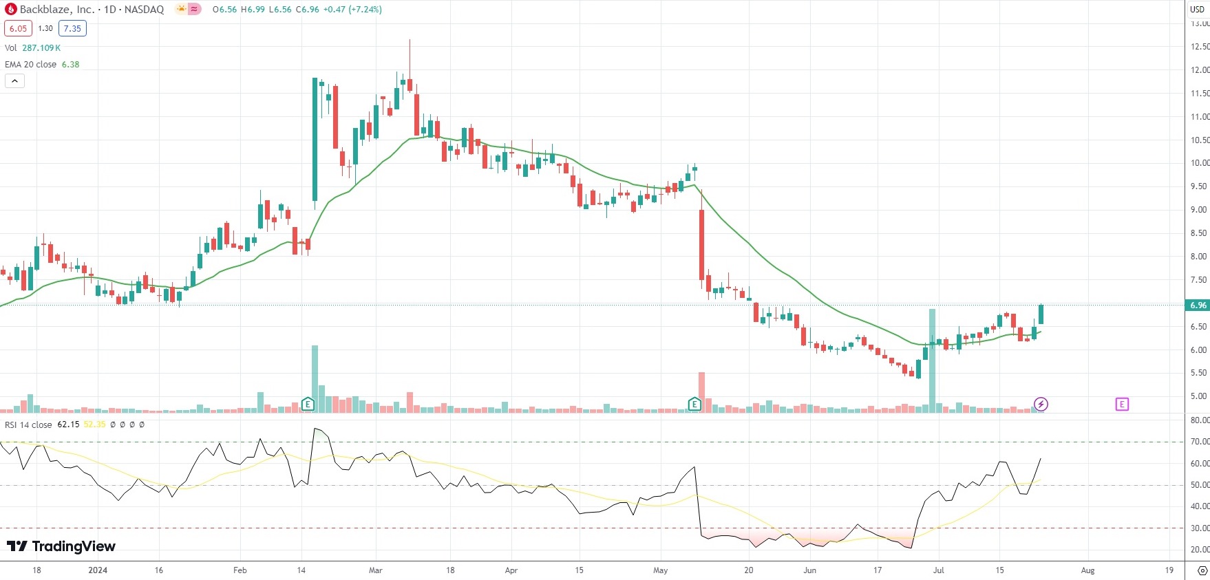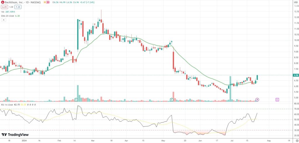 The shares of Backblaze Inc (BLZE) closed 7.24% ($0.47) higher at $6.96 on Nasdaq on Tuesday, as they extended the gain from the previous market session.