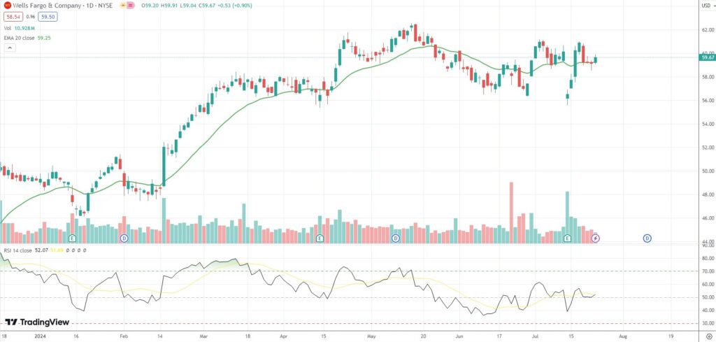 The shares of Wells Fargo & Company (WFC) closed 0.90% ($0.53) higher at $59.67 in New York on Tuesday, as they snapped a three-day streak of losses.