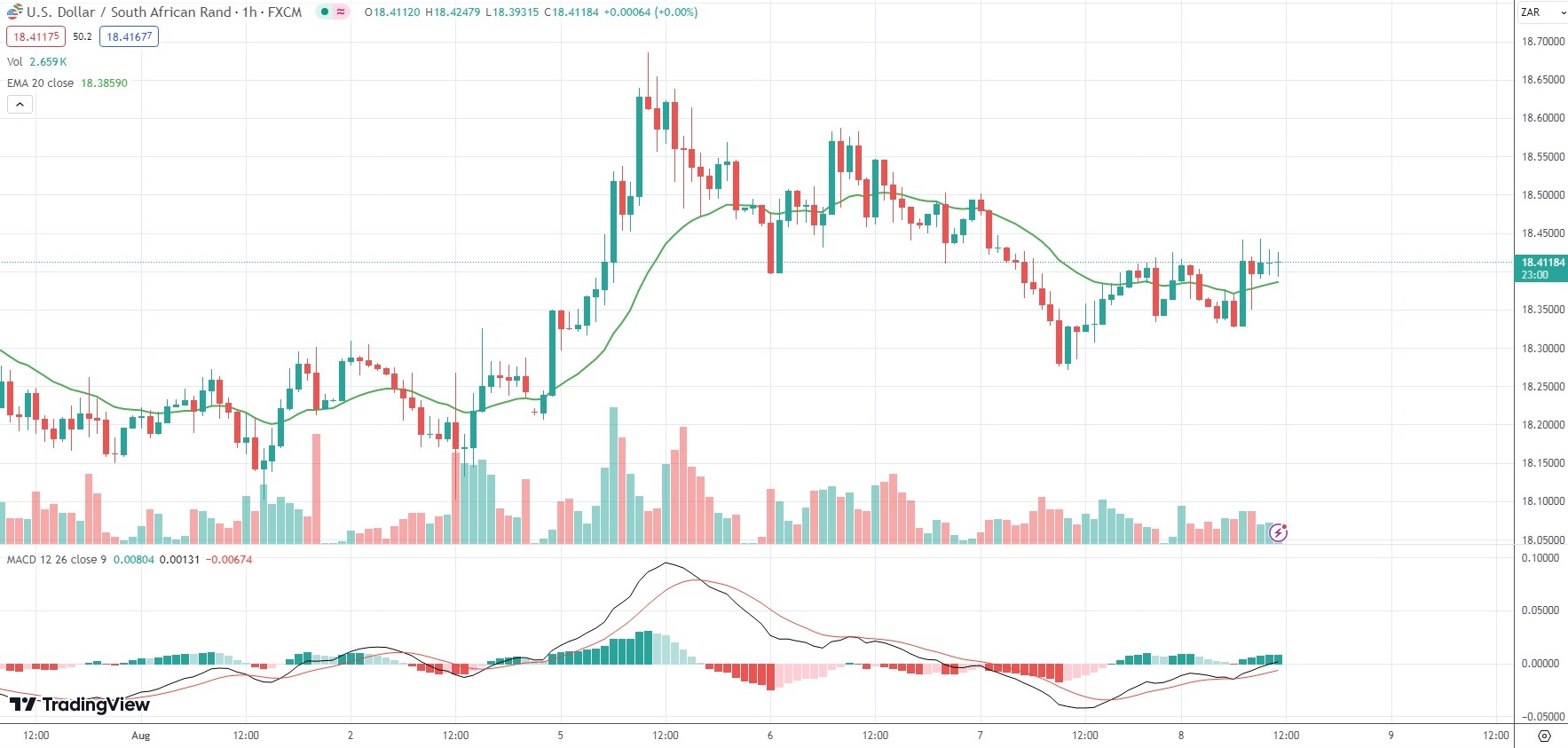 The South African Rand was 0.37% weaker on the day against the US Dollar, with the USD/ZAR currency pair last trading at 18.4105 as investor focus sets on the upcoming report on US initial jobless claims.