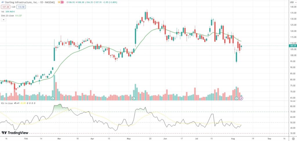 The shares of Sterling Infrastructure Inc (STRL) closed 3.80% ($3.95) higher at $107.91 on Nasdaq on Thursday, as they reversed a loss from the previous market session.