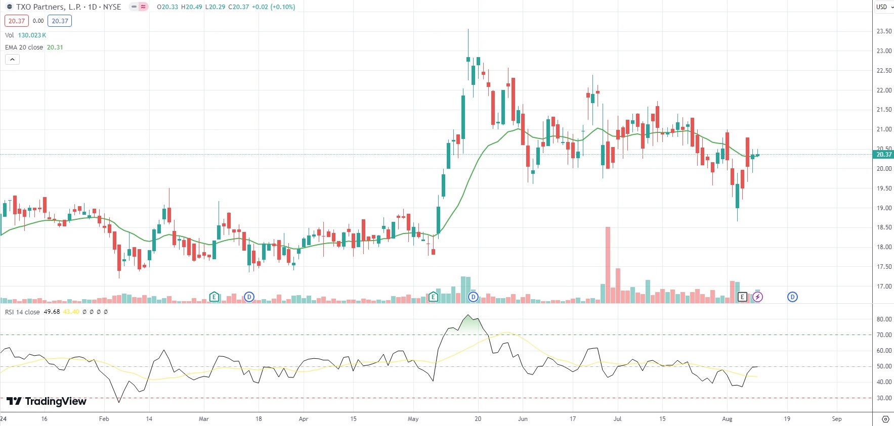 The shares of TXO Energy Partners (TXO) closed 0.10% ($0.02) higher at $20.37 in New York on Friday, as they extended the gains from the previous two market sessions.