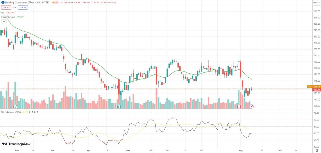 The shares of Boeing Co (BA) closed 0.57% ($0.96) lower at $167.91 in New York on Friday, as they reversed a gain from the previous market session.
