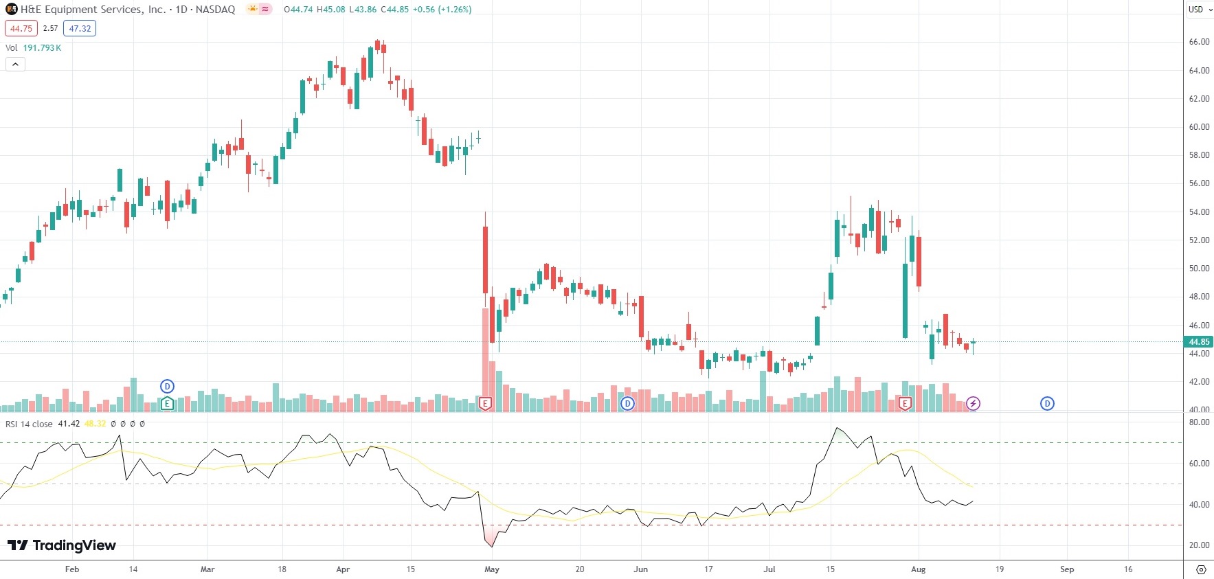 The shares of H&E Equipment Services Inc (HEES) closed 1.26% ($0.56) higher at $44.85 on Nasdaq on Tuesday, as they snapped a two-day streak of losses.
