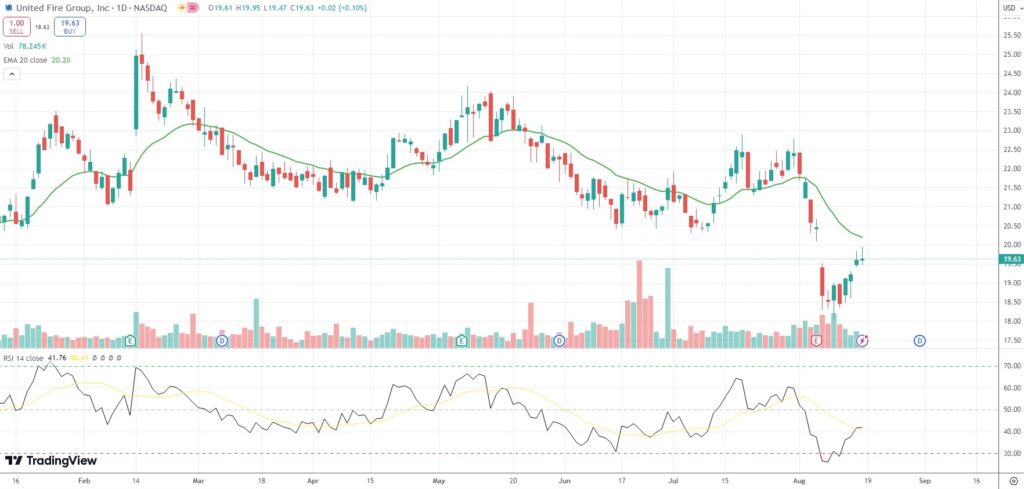The shares of United Fire Group Inc (UFCS) went down 26.46% in 2023, compared with a 43.42% gain for the benchmark index, Nasdaq Composite (IXIC).