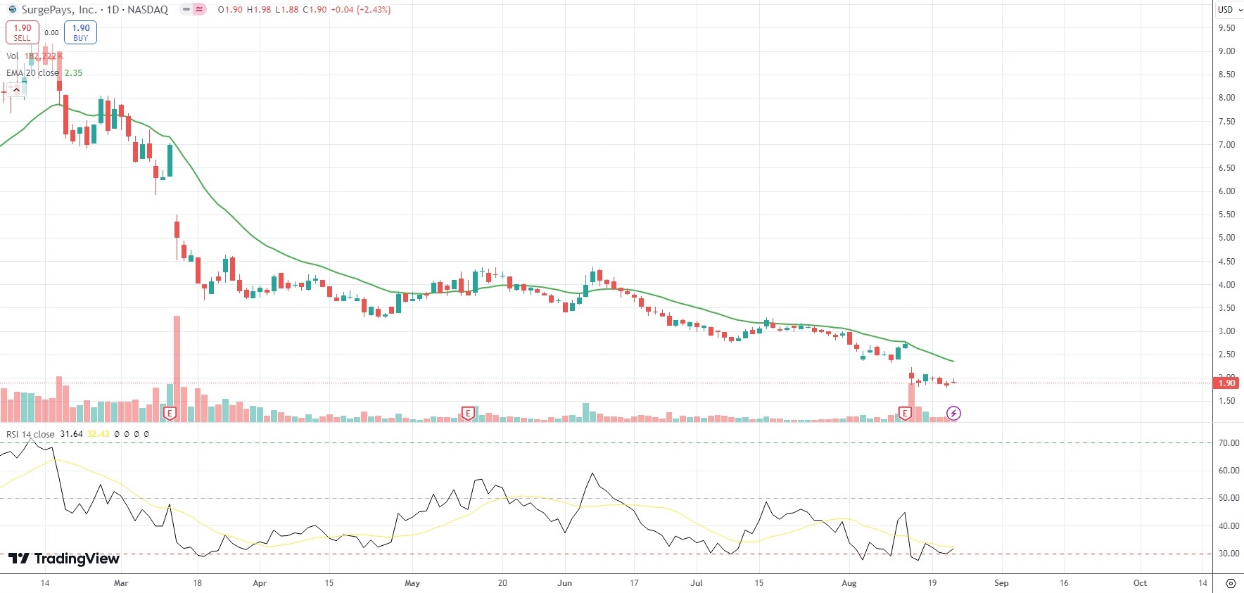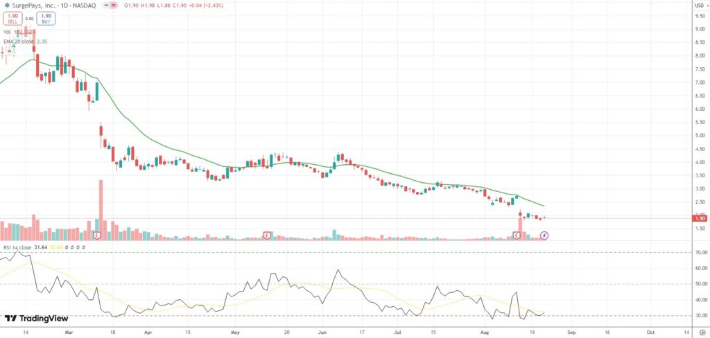 The shares of SurgePays Inc (SURG) closed 2.43% ($0.04) higher at $1.90 on Nasdaq on Thursday, as they snapped a three-day streak of losses.
