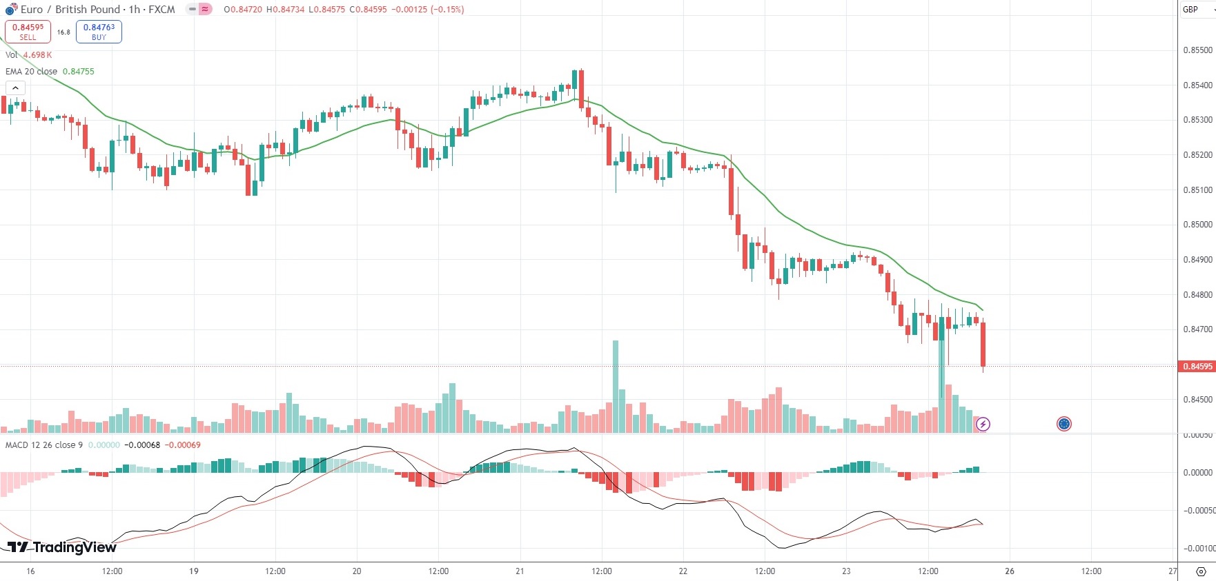 The EUR/GBP currency pair settled 0.32% lower at 0.8459 on Friday. For the week, the minor currency pair went down 0.61% to mark its steepest weekly decline since early July.
