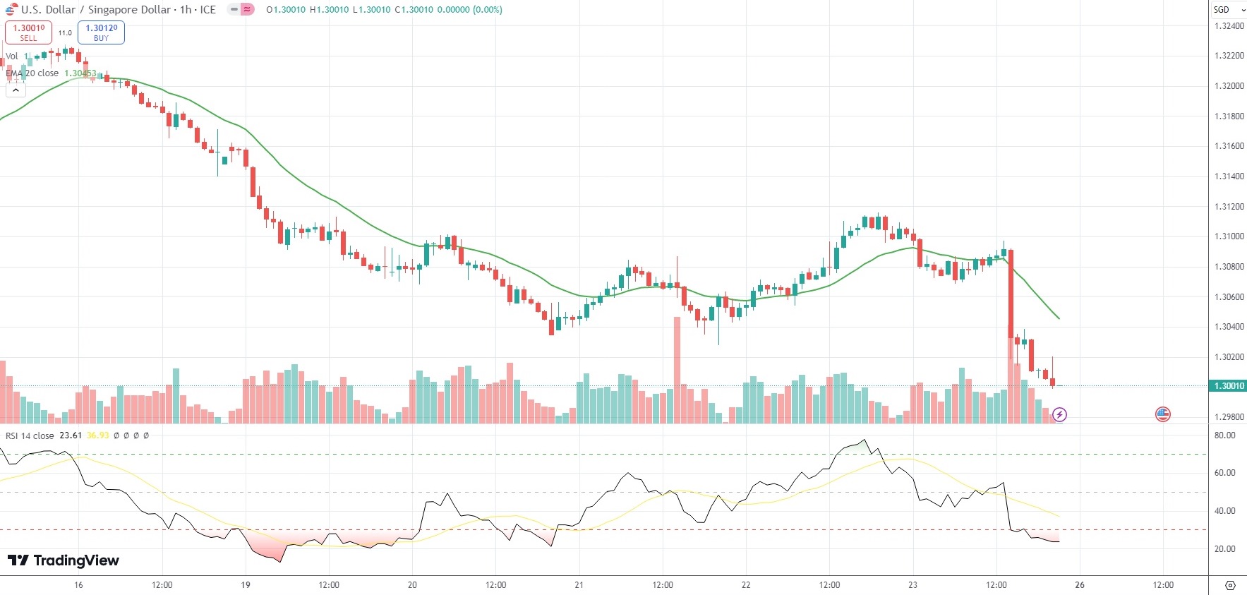 The USD/SGD currency pair settled 0.80% lower at 1.3001, a fresh 6 1/2-year low, on Friday. For the week, the exotic currency pair went down 1.16%, while extending the losses from the previous four weeks.