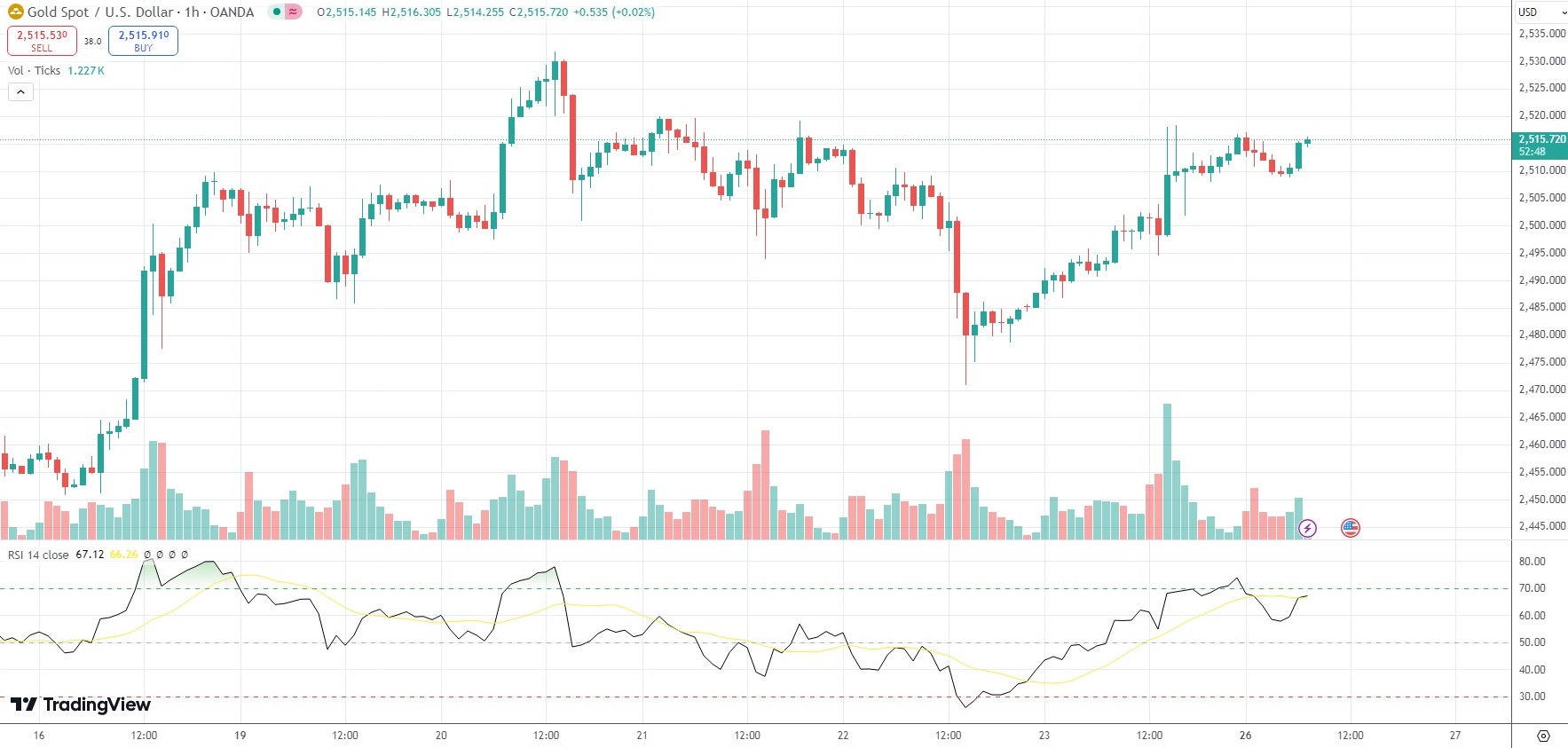 As of 7:05 GMT on Monday Spot Gold was edging up 0.14% to trade at $2,516.24 per troy ounce.