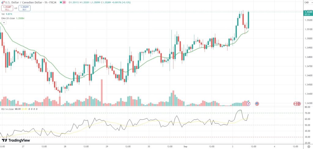 The USD/CAD currency pair traded not far from a fresh 1 1/2-week high of 1.3530 on Tuesday ahead of the outcome of the Bank of Canada’s policy meeting.