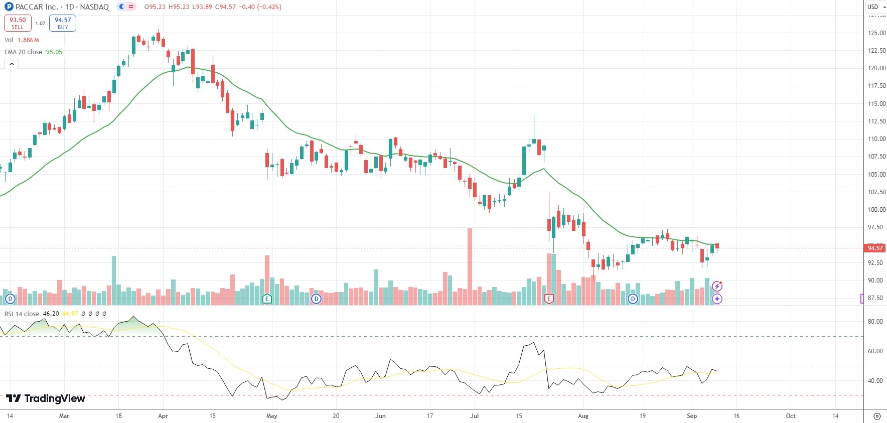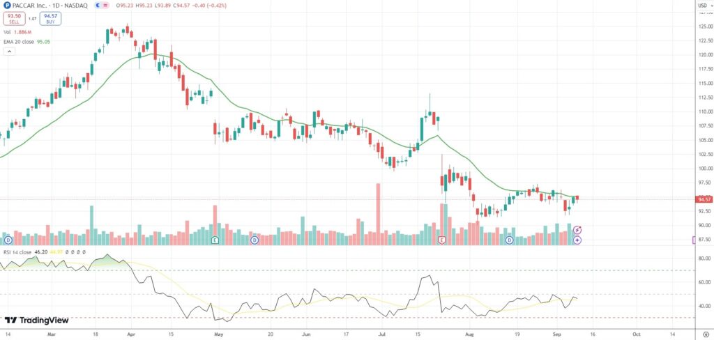 The shares of PACCAR Inc (PCAR) closed 0.42% ($0.40) lower at $94.57 on Nasdaq on Tuesday, as they snapped a two-day streak of gains.