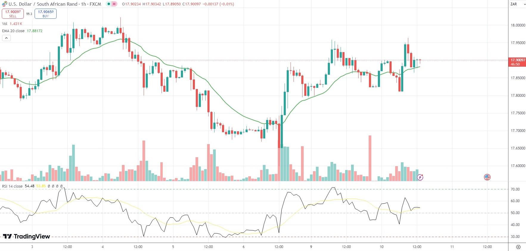 As of 13:12 GMT on Tuesday the USD/ZAR currency pair was edging up 0.42% to trade at 17.8988.