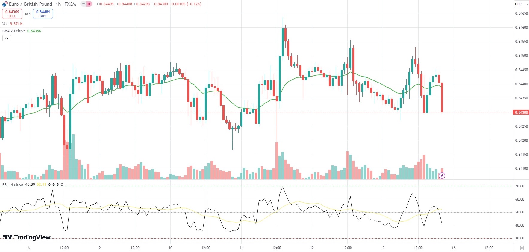 The EUR/GBP currency pair settled 0.08% lower at 0.8430 on Friday. For the week, the minor currency pair remained almost without change.