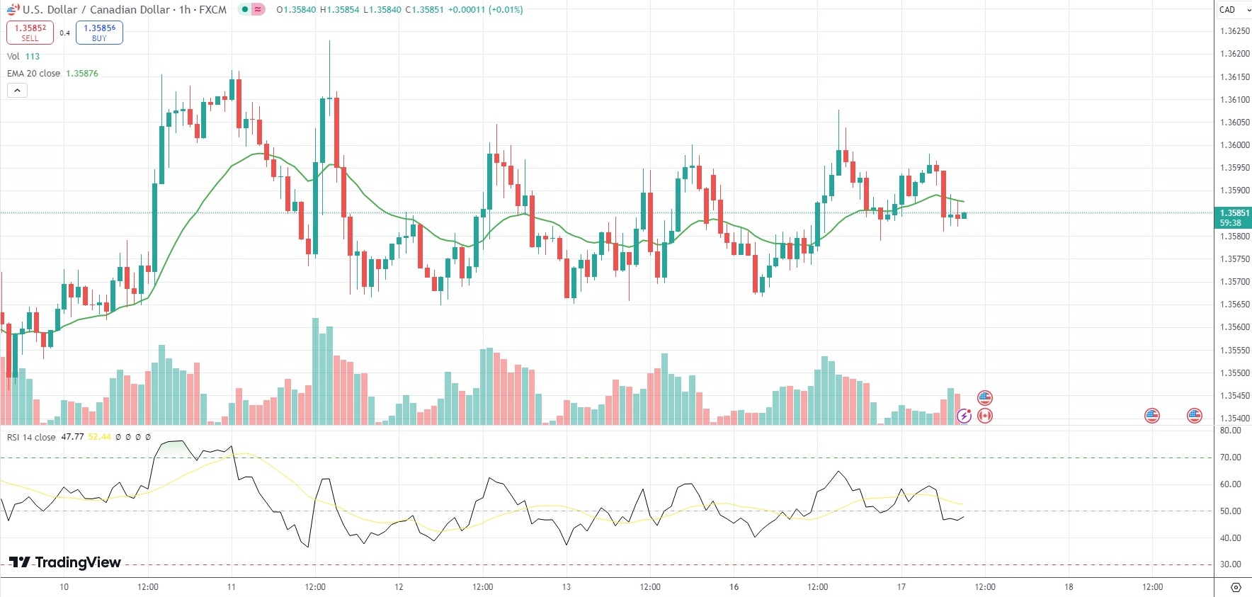 As of 8:59 GMT on Tuesday the USD/CAD currency pair was inching down 0.02% to trade at 1.3584.