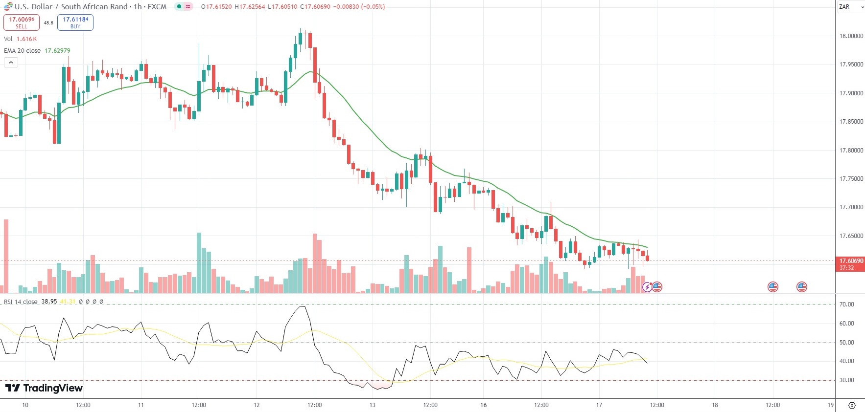 The USD/ZAR currency pair hovered just above a fresh 13 1/2-month low of 17.5916 on Tuesday ahead of the outcome of the Federal Reserve’s two-day policy meeting, South African CPI inflation report and South African Reserve Bank’s (SARB) policy decision.
