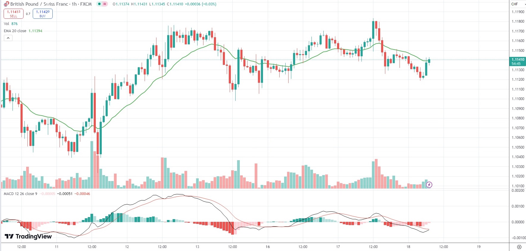 As of 7:04 GMT on Wednesday the GBP/CHF currency pair was inching down 0.02% to trade at 1.1142.