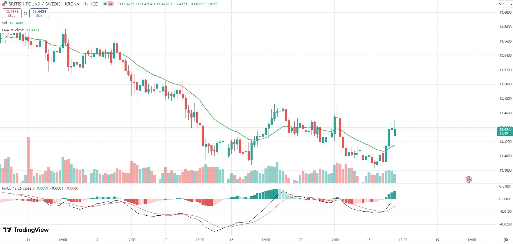 As of 9:47 GMT on Wednesday the GBP/SEK currency pair was edging up 0.21% to trade at 13.4358.