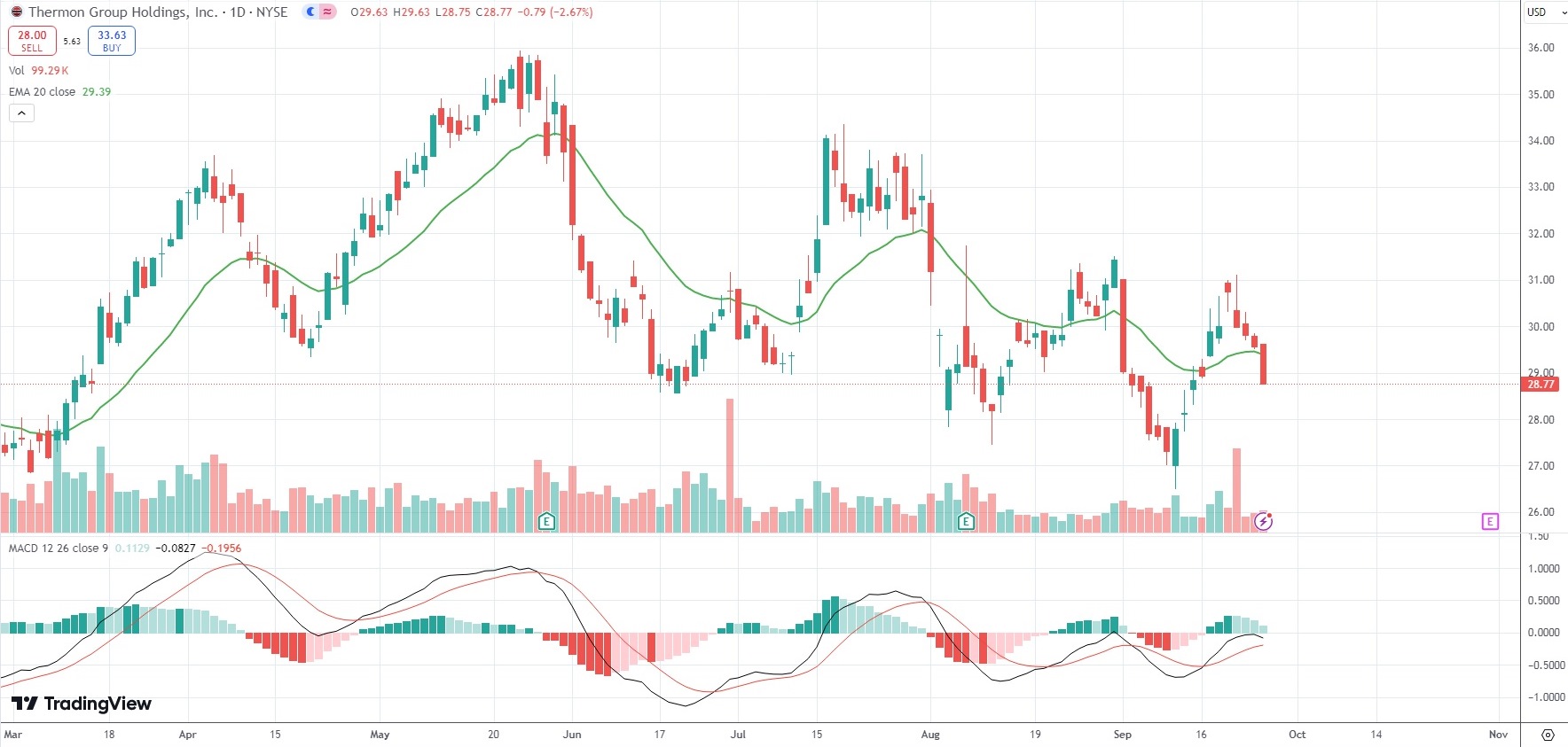 The shares of Thermon Group Holdings Inc (THR) closed 2.67% ($0.79) lower at $28.77 in New York on Wednesday, as they extended the losses from the previous three market sessions.