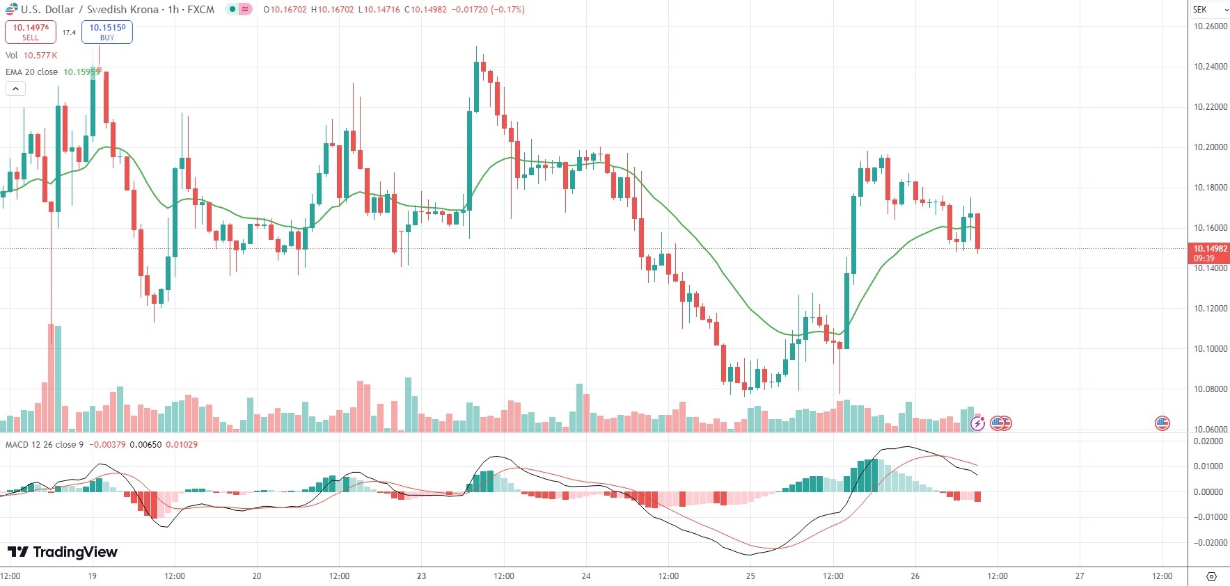 The Swedish Krona was 0.25% firmer on the day against the US Dollar, with the USD/SEK currency pair last trading at 10.1502.
