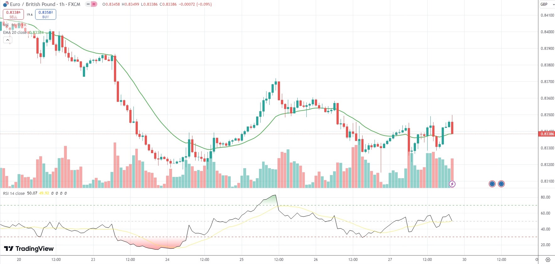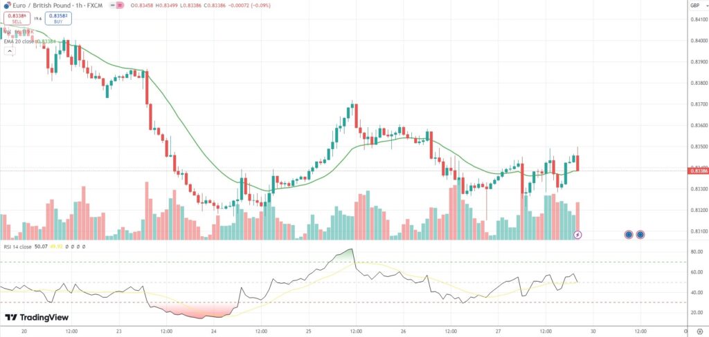 The EUR/GBP currency pair settled 0.10% higher at 0.8338 on Friday. For the week, the minor currency pair went down 0.48%, as it extended the loss from the prior weekly period.