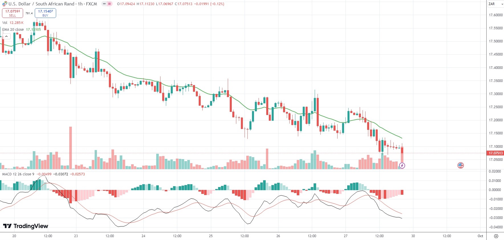 The USD/ZAR currency pair settled 0.49% lower at 17.0751 on Friday. For the week, the exotic currency pair went down 1.64%, as it extended the losses from the prior two weekly periods.